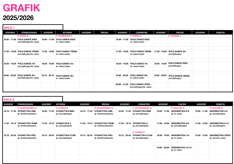 ZASTRZEGAMY SOBIE PRAWO DO DROBNYCH ZMIAN GRAFIKU